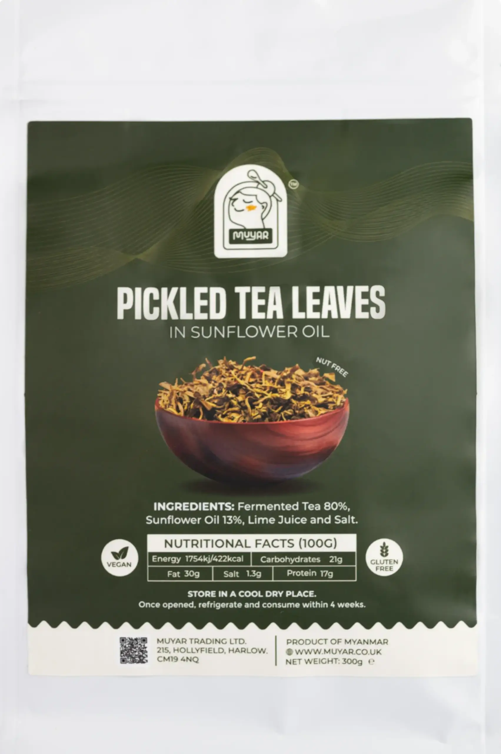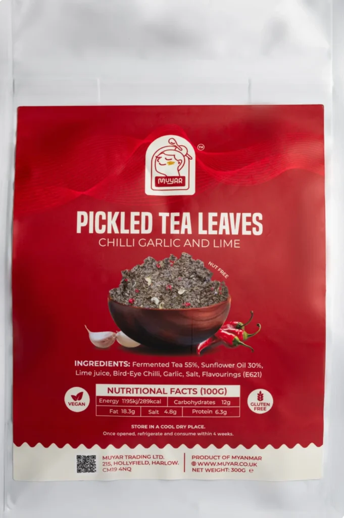 Myanmar Pickled Tea leaves which is also widely known as Lahpet is the edible tea leaf uniquely available in Myanmar. Muyar’s tea leaf grows in Shan State of Myanmar. Pickled Tea are normally eaten together with crispy mixed beans and nut. Best to eat as a salad or cook with preferable meat as a curry.